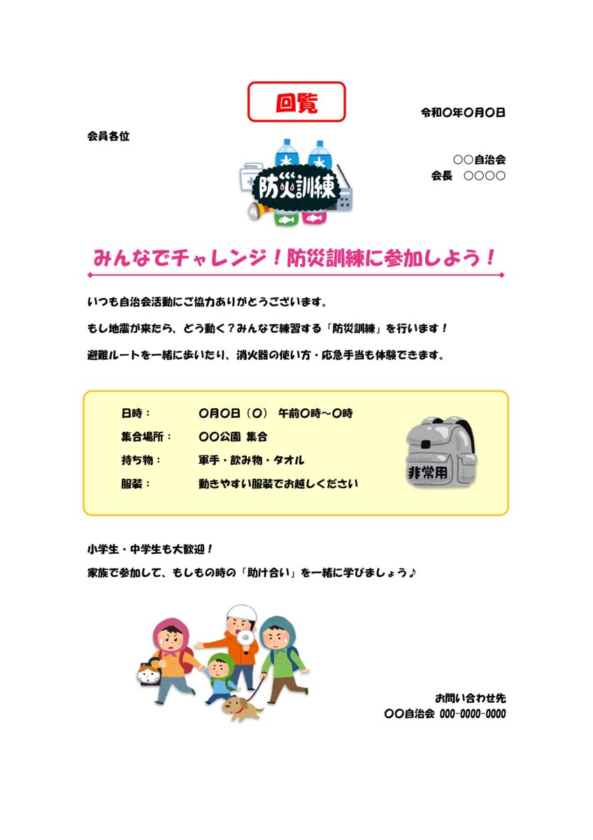 → 防災訓練回覧文テンプレート(ポップ版)