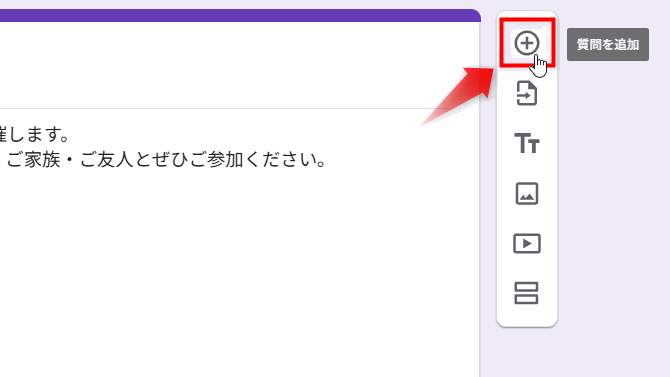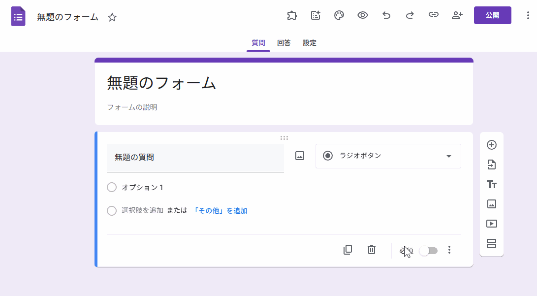 右側の「+」ボタンをクリックすると、質問を追加できます。