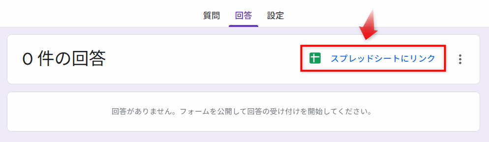 回答を一覧で管理するために、スプレッドシートと連携させます。