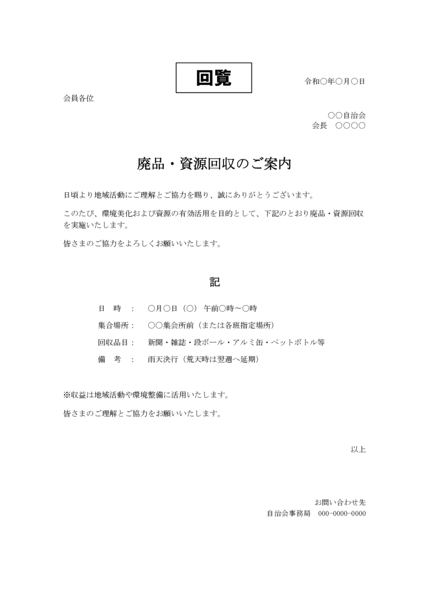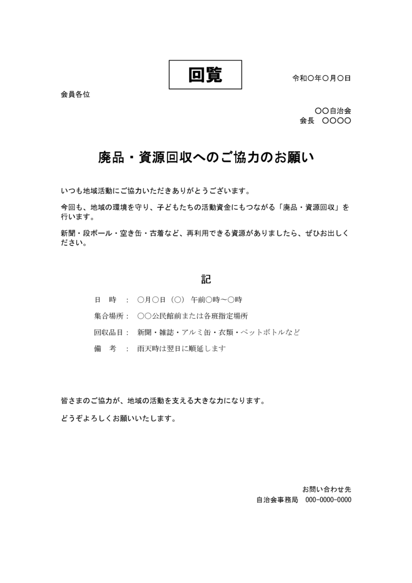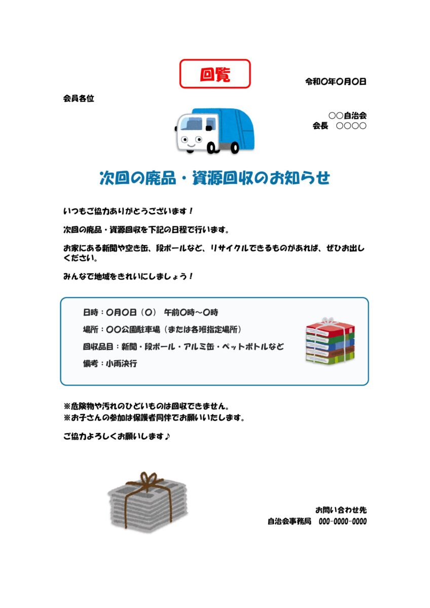 廃品・資源回収の回覧文テンプレート3選|自治会・子ども会・PTAで使えるWord