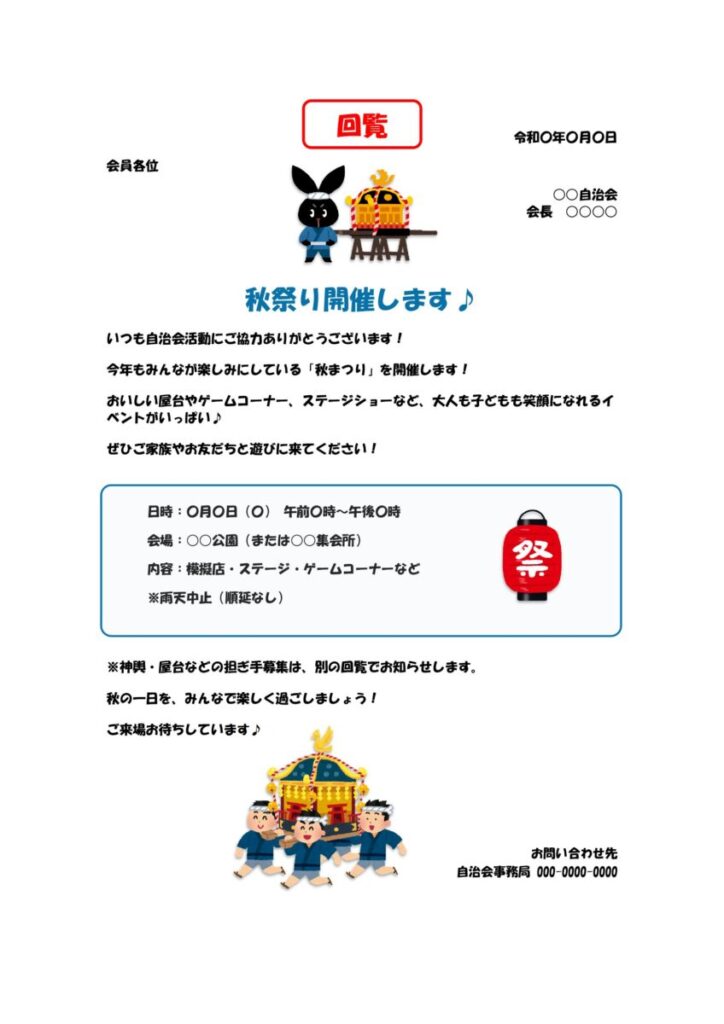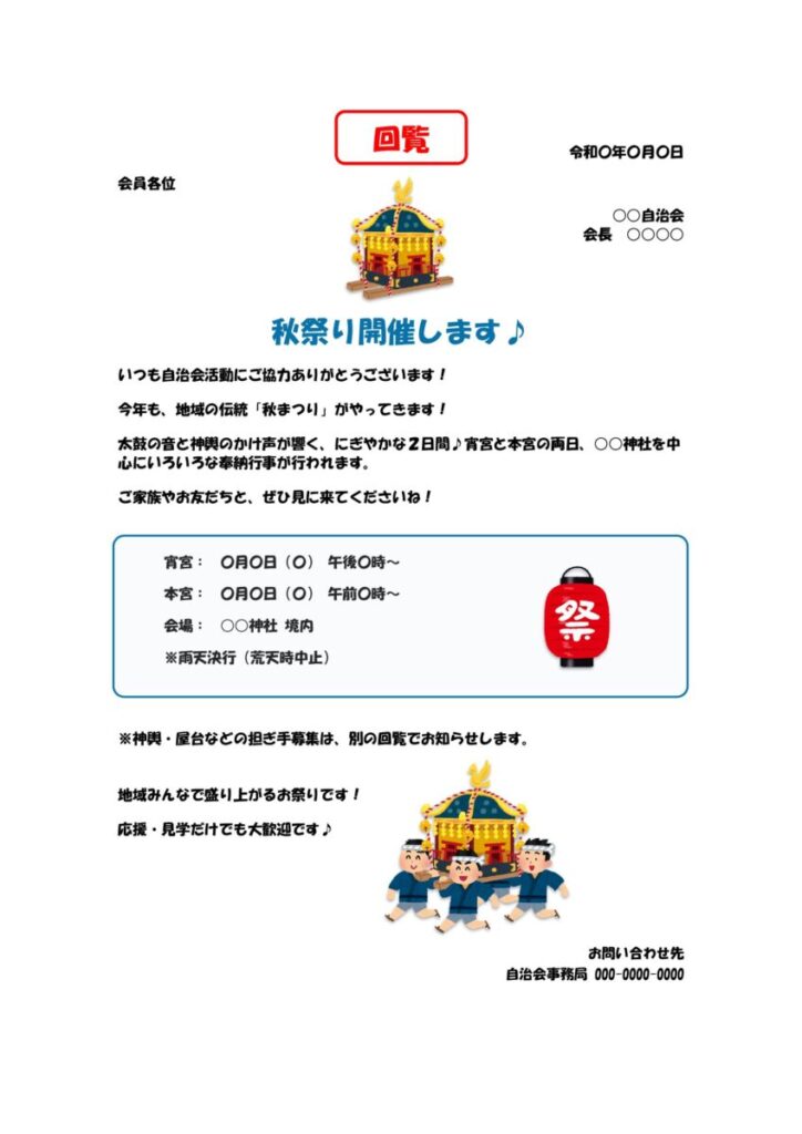 秋祭りの回覧文テンプレート一覧(3タイプ×2パターン)