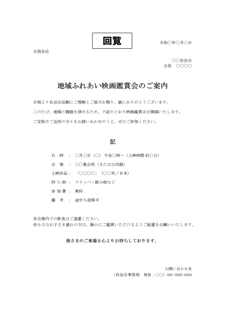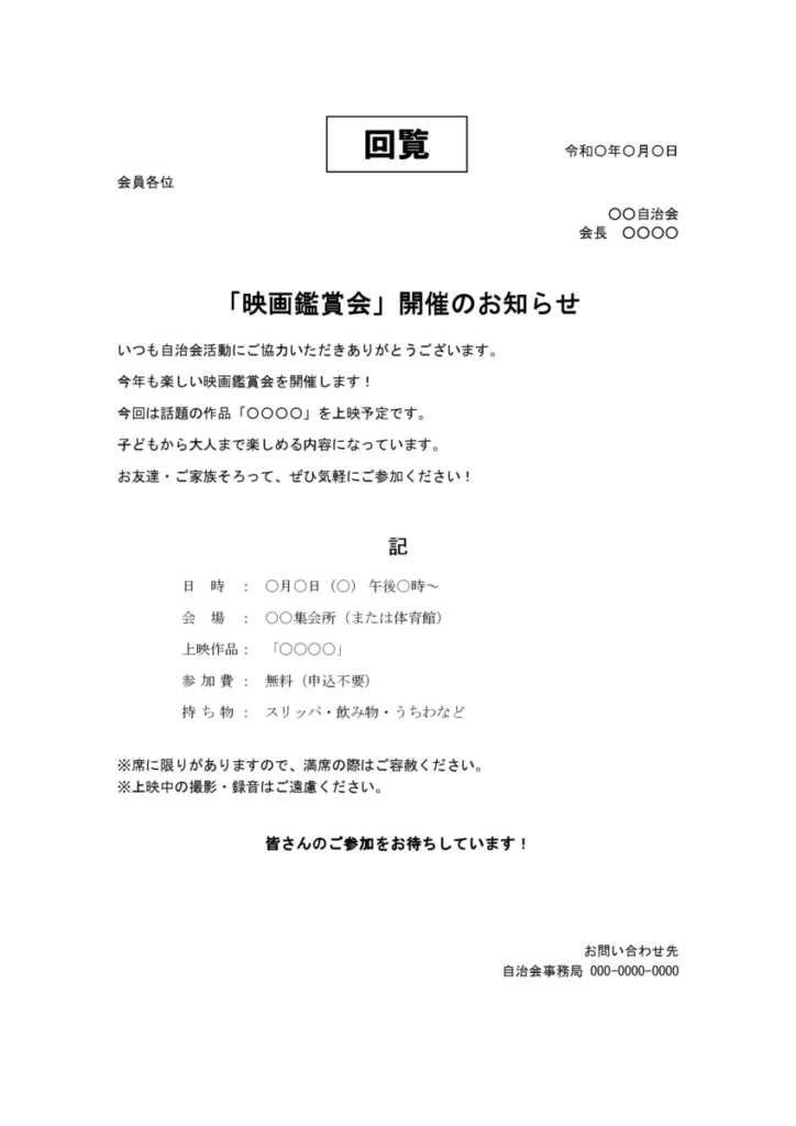映画鑑賞会の回覧文テンプレート3タイプ(Word配布)