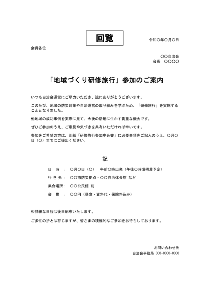 会長 ○○○○「地域づくり研修旅行」参加のご案内