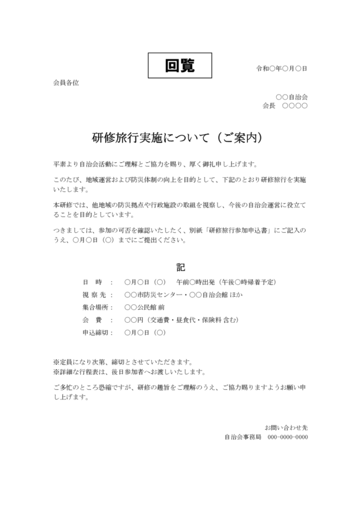 この記事では、役員・関係者向けの研修旅行案内に使える回覧文テンプレート3タイプ(Word形式)を紹介します。