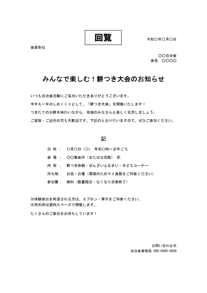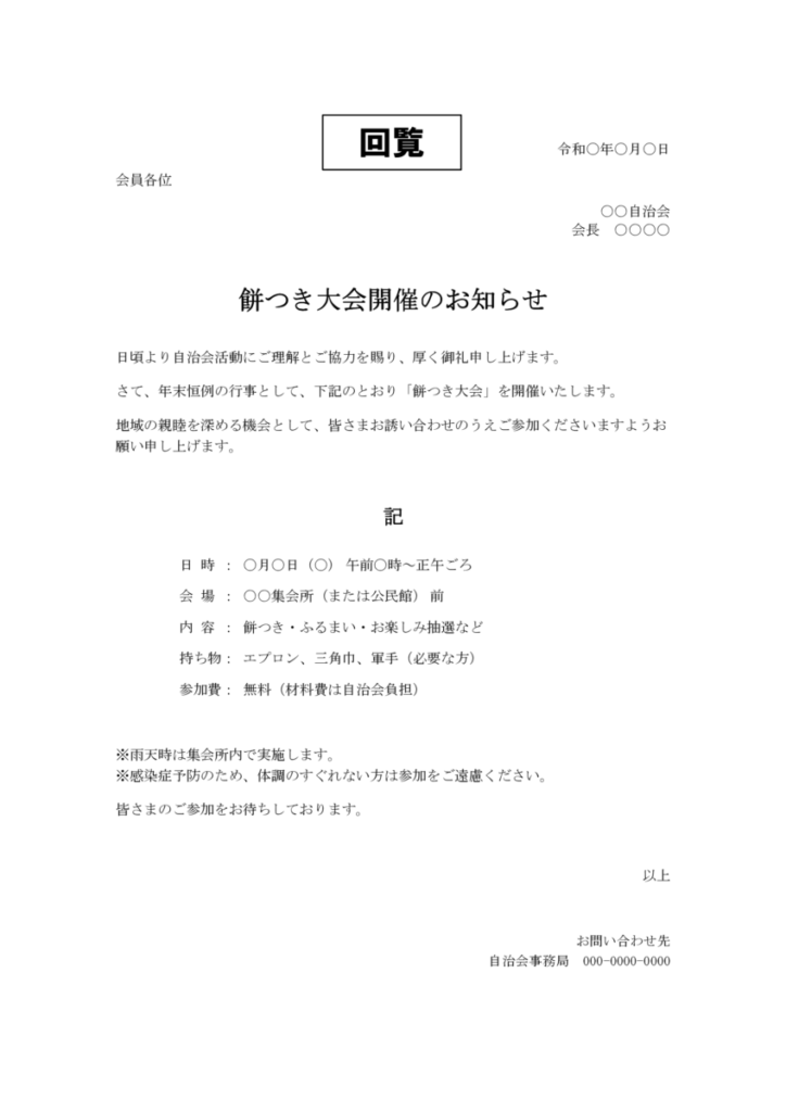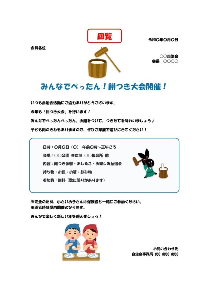 餅つき大会の回覧文テンプレート一覧