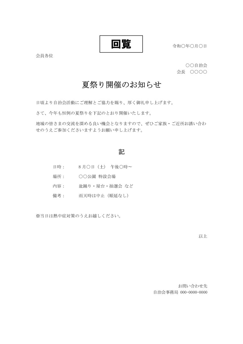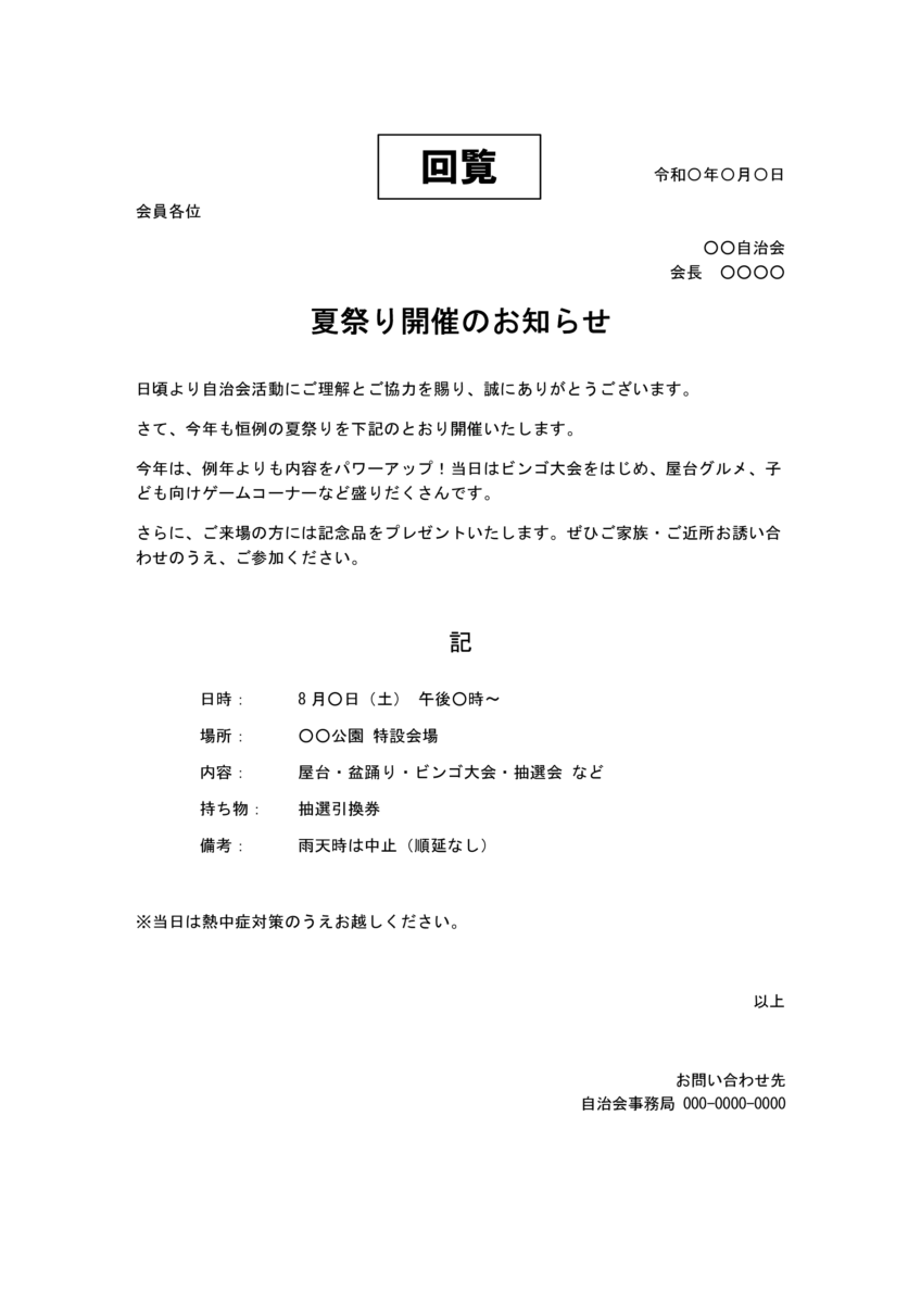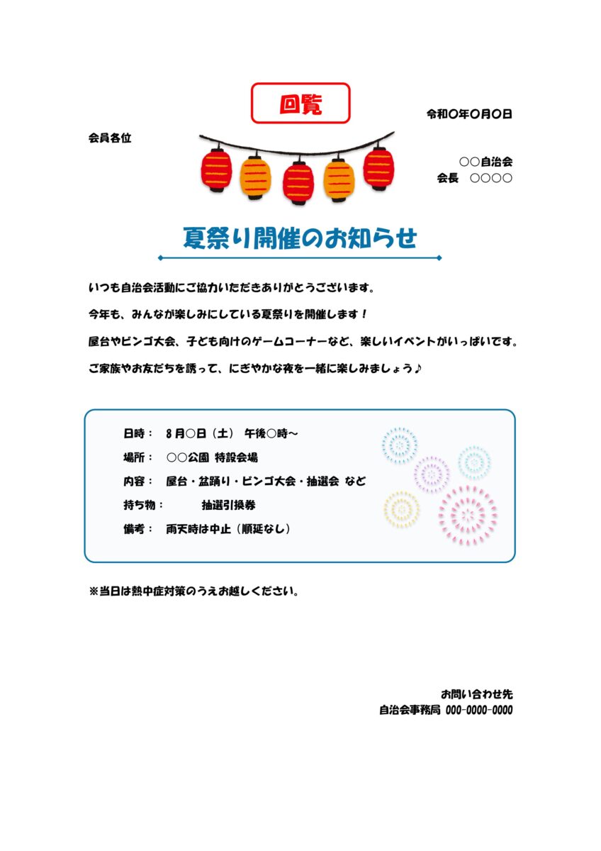 → 夏祭り回覧文テンプレート(フォーマル版)