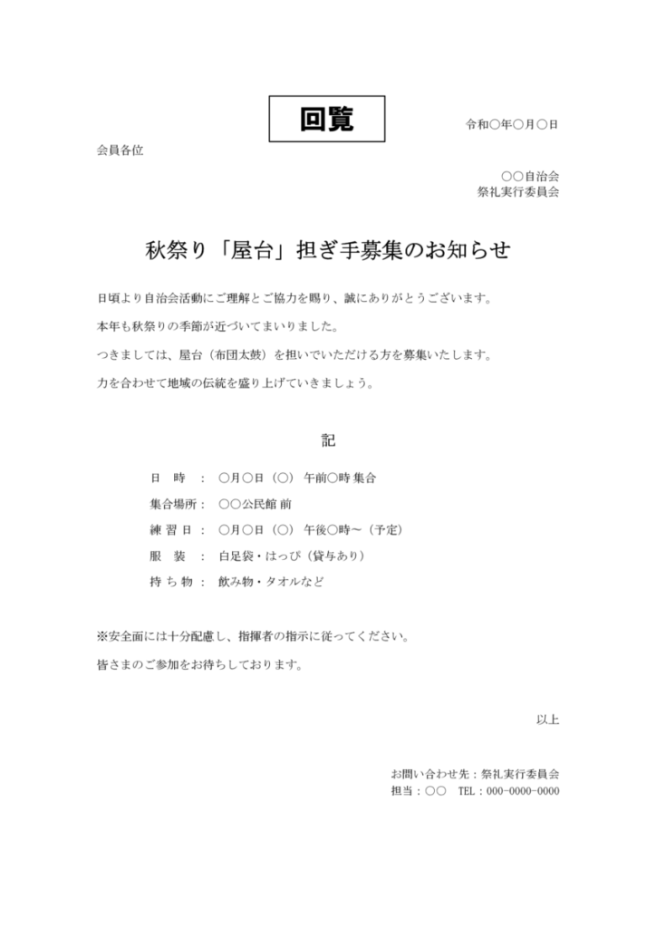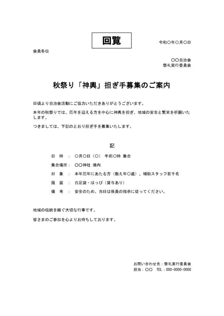 この記事では、現場でそのまま使える 担ぎ手募集の回覧文テンプレート(Word形式) を対象別に用意しました。