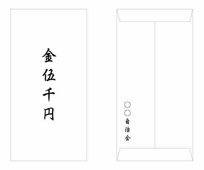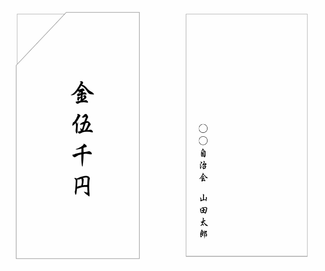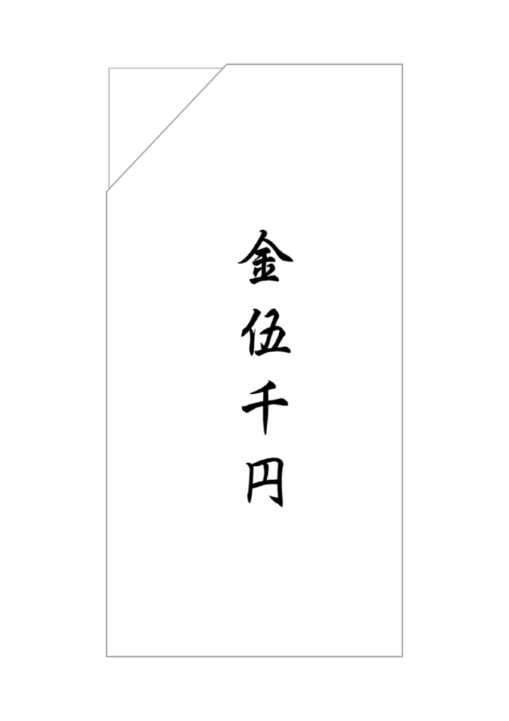 表面には金額(例:金五千円)を中央に書き、裏面には住所と氏名を左下寄りに書くのが正式な形です。
